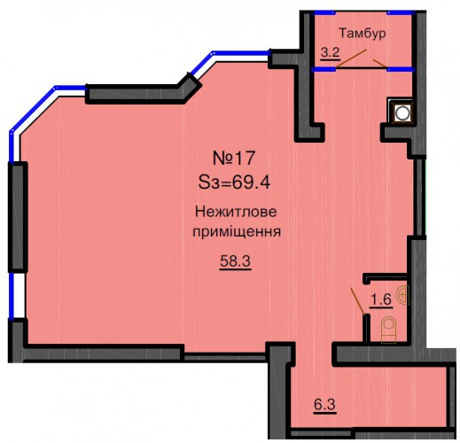 S санузел (м2):