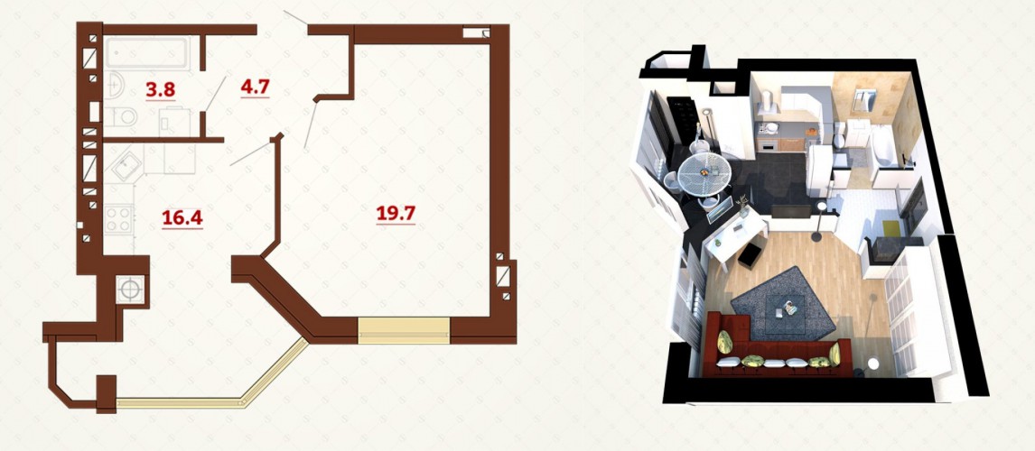 ОДНОКІМНАТНА КВАРТИРА 43.10 М/КВ