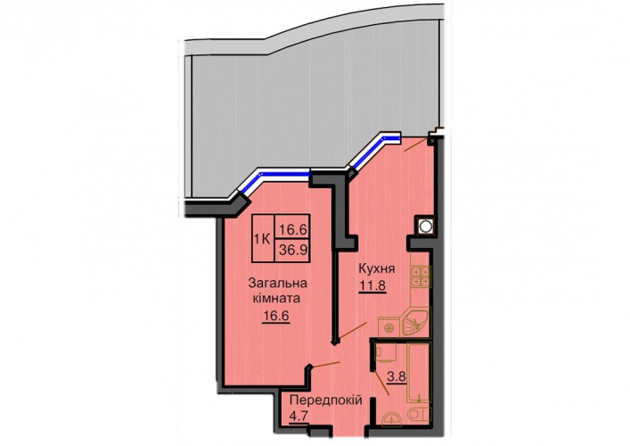 ОДНОКІМНАТНА КВАРТИРА 36.90 М/КВ