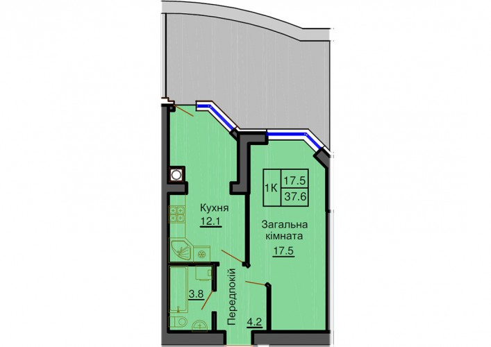ОДНОКІМНАТНА КВАРТИРА 37.60 М/КВ