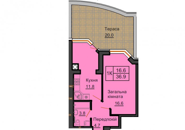 ОДНОКІМНАТНА КВАРТИРА 36.90 М/КВ