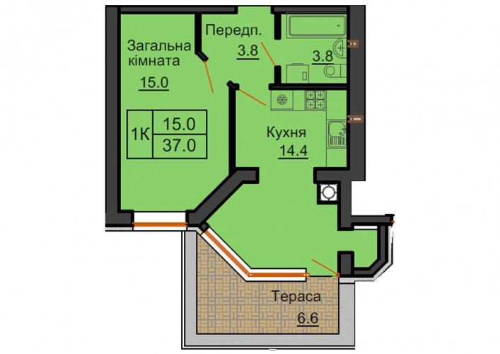 ОДНОКІМНАТНА КВАРТИРА 37.00 М/КВ