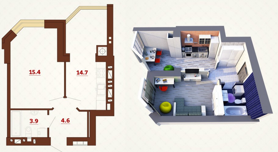 ОДНОКІМНАТНА КВАРТИРА 37.40 М/КВ