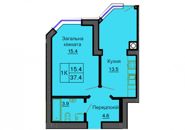 ОДНОКІМНАТНА КВАРТИРА 37.40 М/КВ