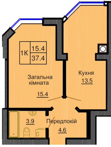 ОДНОКІМНАТНА КВАРТИРА 37.40 М/КВ
