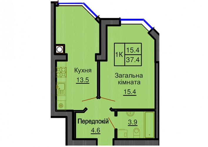 ОДНОКІМНАТНА КВАРТИРА 37.40 М/КВ