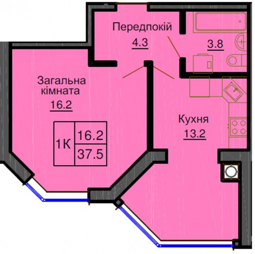 ОДНОКІМНАТНА КВАРТИРА 37.60 М/КВ