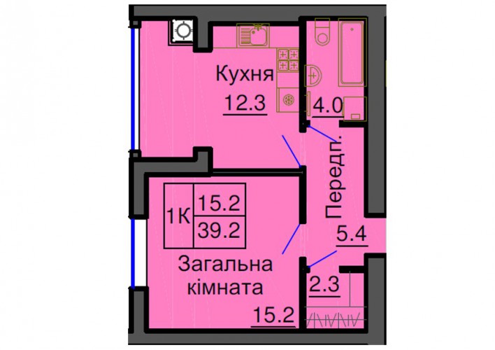 ОДНОКІМНАТНА КВАРТИРА 39.20 М/КВ