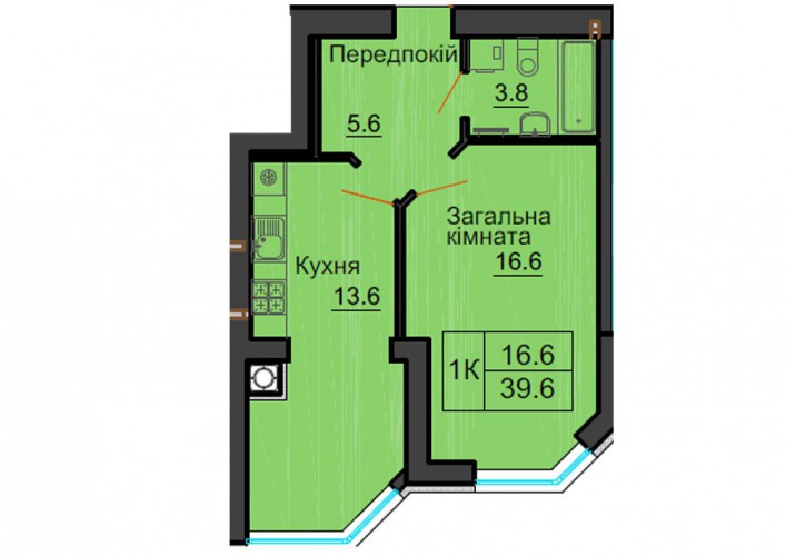 ОДНОКІМНАТНА КВАРТИРА 39.60 М/КВ