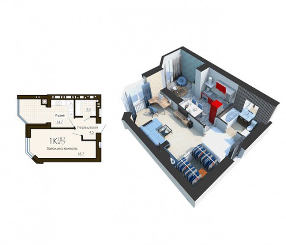 ОДНОКІМНАТНА КВАРТИРА 41.70 М/КВ