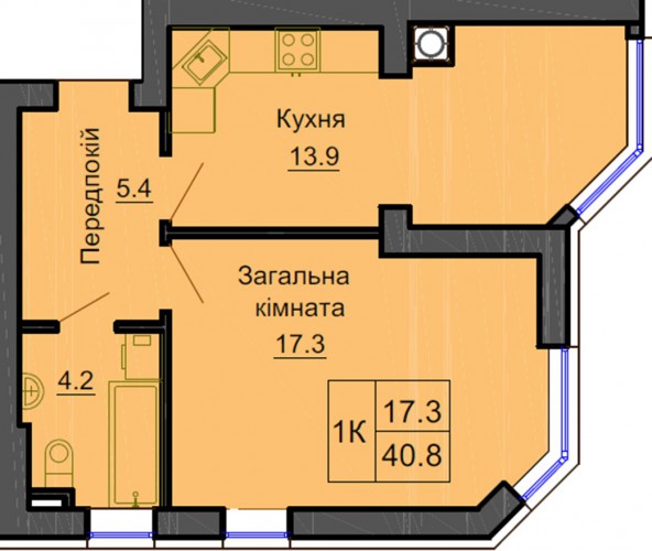 ОДНОКІМНАТНА КВАРТИРА 40.80 М/КВ