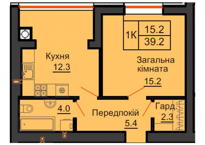 ОДНОКІМНАТНА КВАРТИРА 39.20 М/КВ