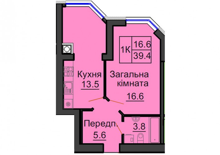 ОДНОКІМНАТНА КВАРТИРА 39.40 М/КВ