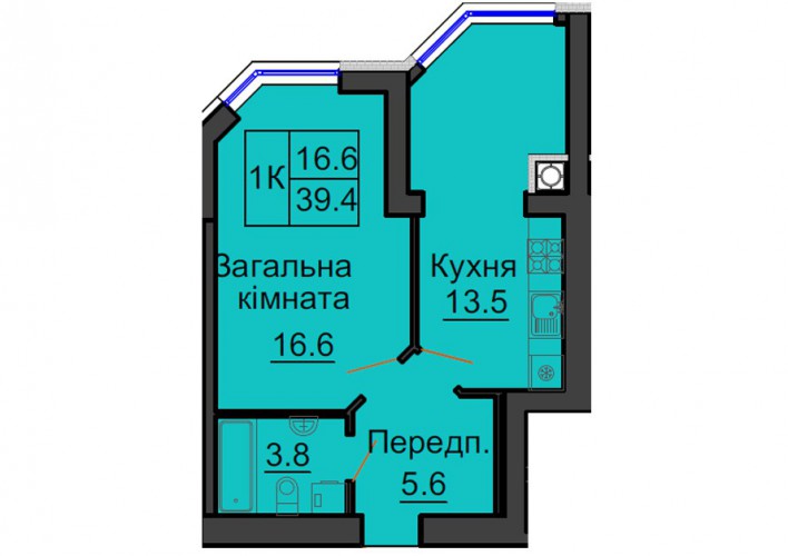 ОДНОКІМНАТНА КВАРТИРА 39.40 М/КВ