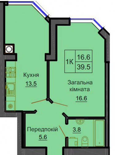 ОДНОКІМНАТНА КВАРТИРА 39.50 М/КВ