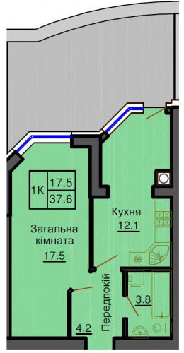 ОДНОКІМНАТНА КВАРТИРА 37.60 М/КВ