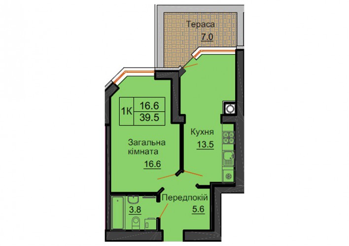 ОДНОКІМНАТНА КВАРТИРА 39.50 М/КВ