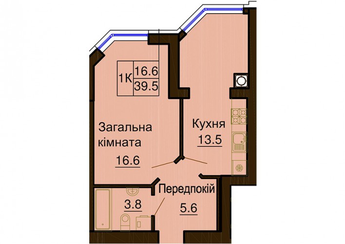 ОДНОКІМНАТНА КВАРТИРА 39.50 М/КВ