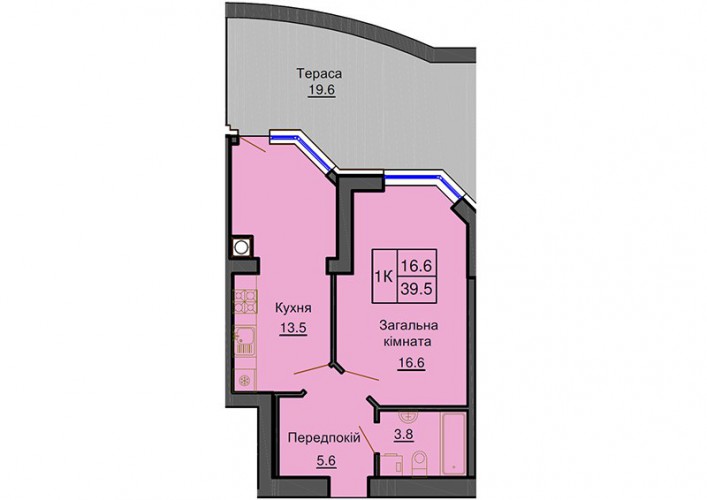 ОДНОКІМНАТНА КВАРТИРА 39.50 М/КВ