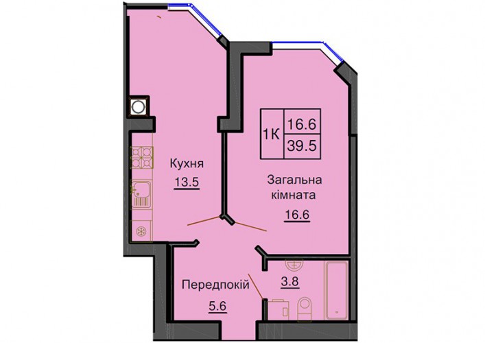ОДНОКІМНАТНА КВАРТИРА 39.50 М/КВ