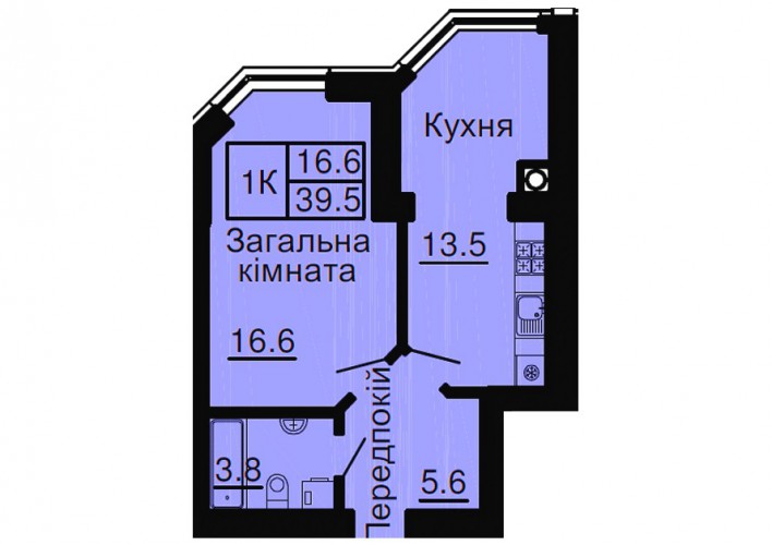ОДНОКІМНАТНА КВАРТИРА 39.50 М/КВ