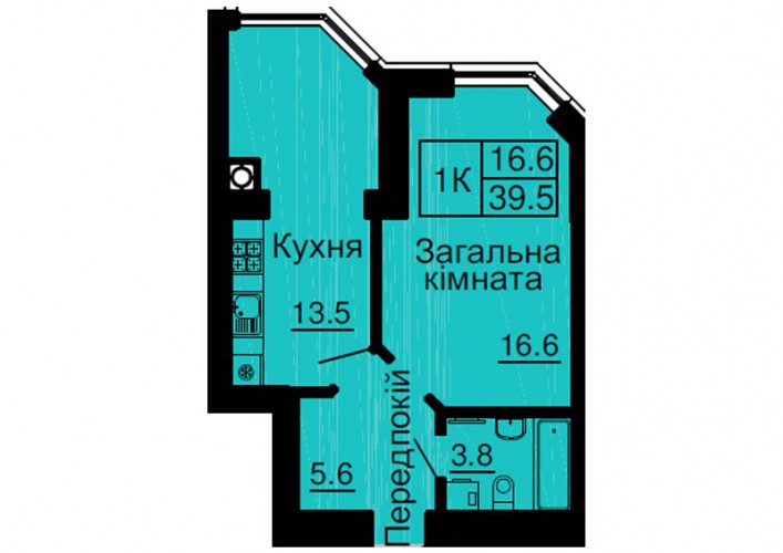 ОДНОКІМНАТНА КВАРТИРА 39.50 М/КВ