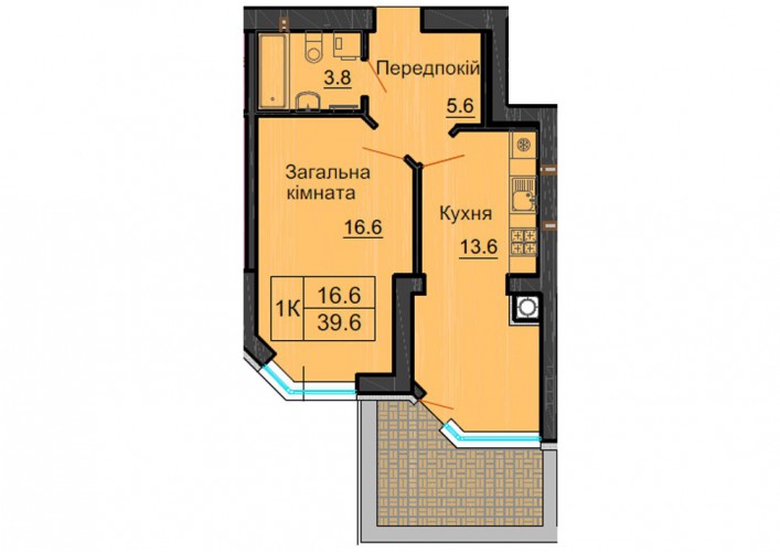 ОДНОКІМНАТНА КВАРТИРА 39.60 М/КВ