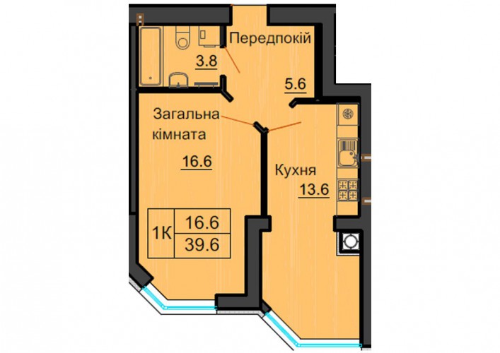 ОДНОКІМНАТНА КВАРТИРА 39.60 М/КВ