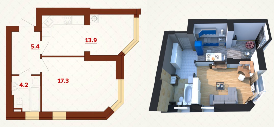 ОДНОКІМНАТНА КВАРТИРА 40.80 М/КВ