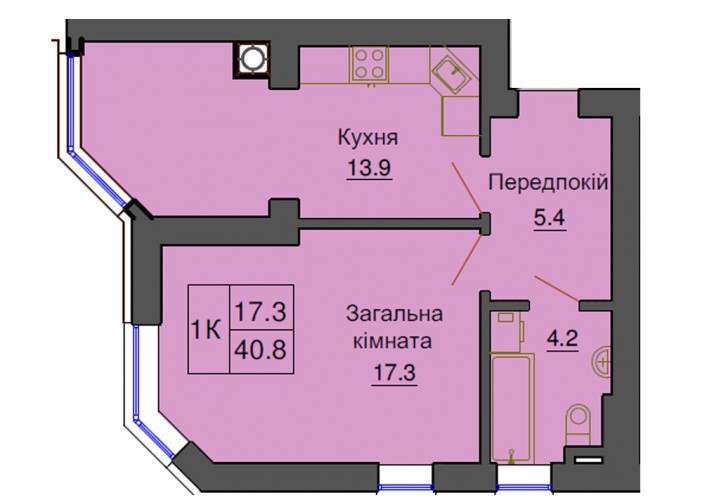 ОДНОКІМНАТНА КВАРТИРА 40.80 М/КВ