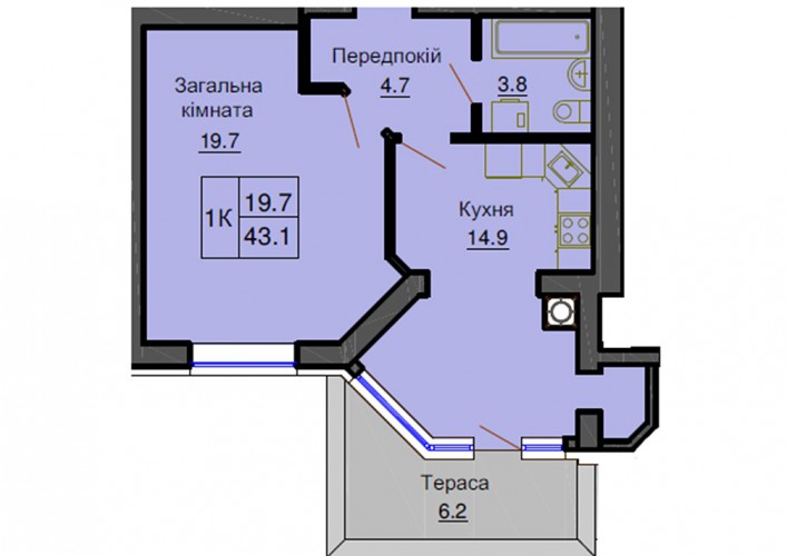 ОДНОКІМНАТНА КВАРТИРА 43.10 М/КВ