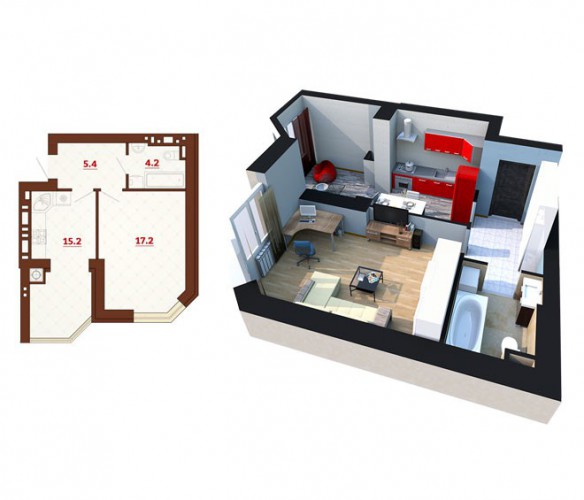ОДНОКІМНАТНА КВАРТИРА 42.00 М/КВ