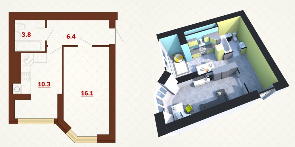 ОДНОКІМНАТНА КВАРТИРА 36.60 М/КВ