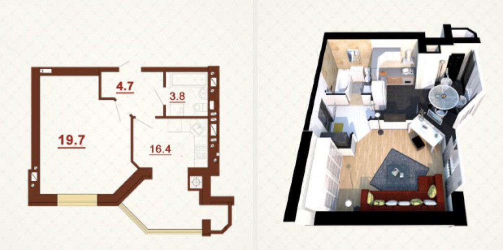 ОДНОКІМНАТНА КВАРТИРА 43.10 М/КВ