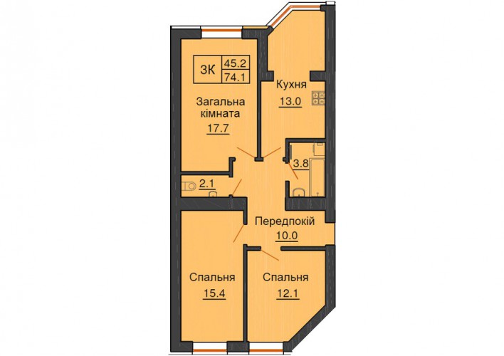 3-Х КІМНАТНА КВАРТИРА 74.10 М/КВ