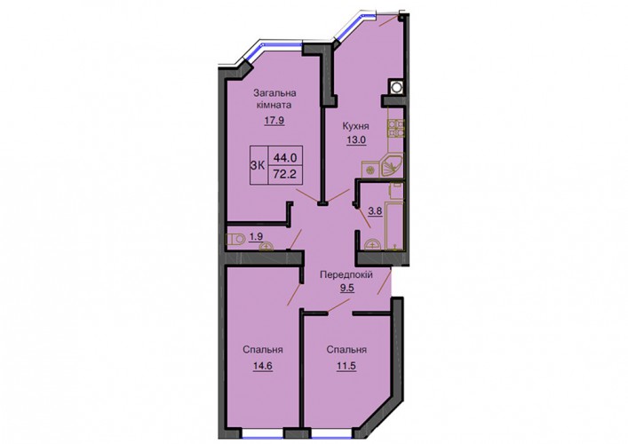 3-Х КІМНАТНА КВАРТИРА 72.20 М/КВ