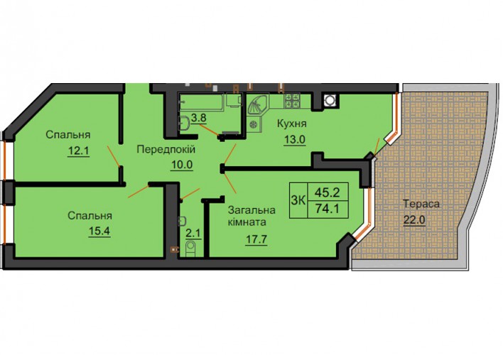 3-Х КІМНАТНА КВАРТИРА 74.10 М/КВ