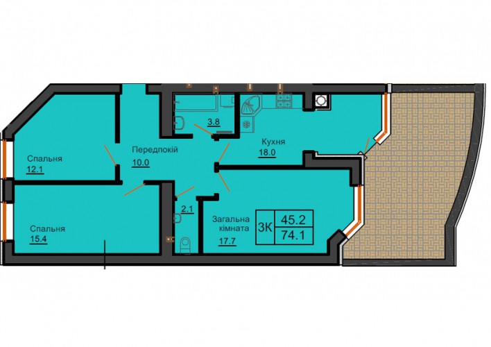 3-Х КІМНАТНА КВАРТИРА 74.10 М/КВ