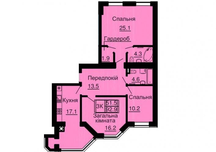 3-Х КІМНАТНА КВАРТИРА 92.90 М/КВ