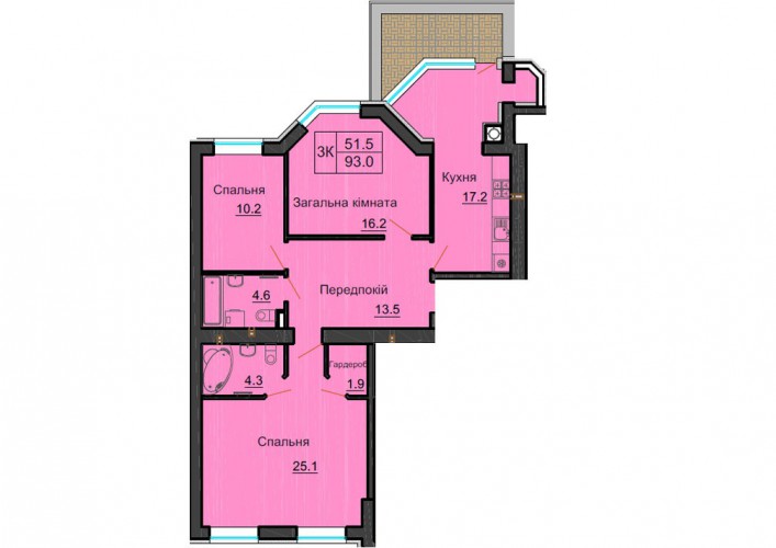 3-Х КІМНАТНА КВАРТИРА 93.00 М/КВ