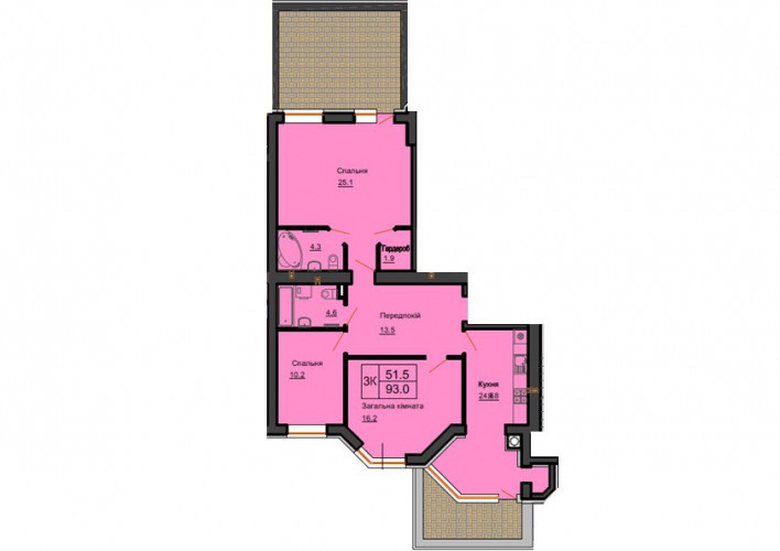 3-Х КІМНАТНА КВАРТИРА 93.00 М/КВ