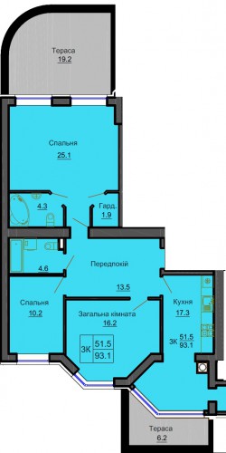 3-Х КІМНАТНА КВАРТИРА 93.10 М/КВ