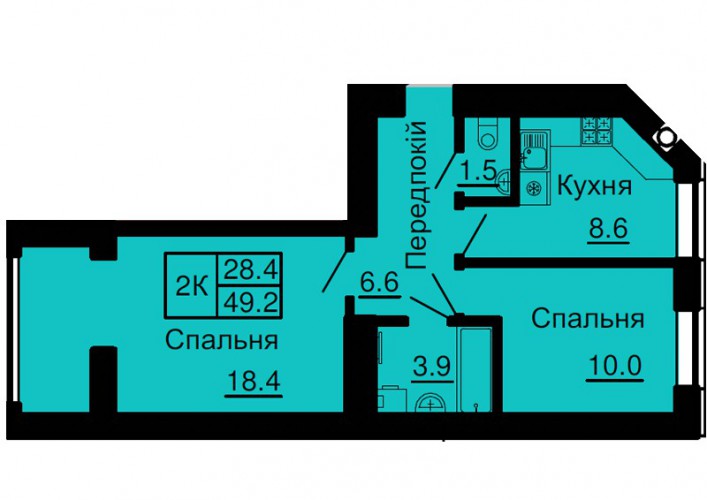 2-Х КІМНАТНА КВАРТИРА 49.20 М/КВ