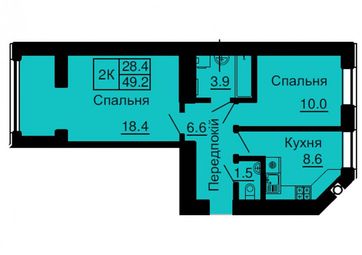 2-Х КІМНАТНА КВАРТИРА 49.20 М/КВ