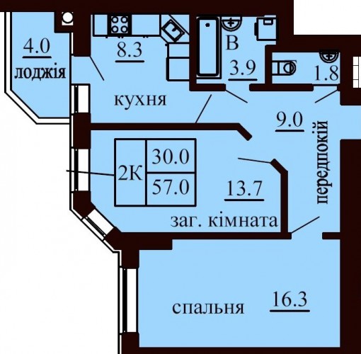 2-Х КІМНАТНА КВАРТИРА 57.00 М/КВ
