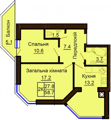 2-Х КІМНАТНА КВАРТИРА 58.70 М/КВ