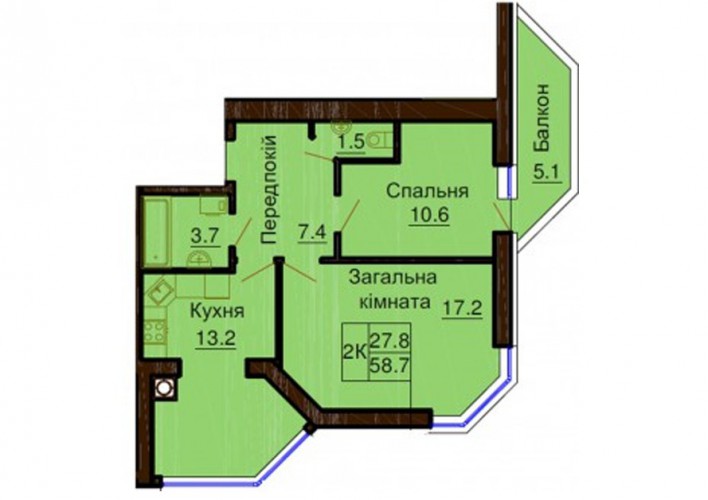 2-Х КІМНАТНА КВАРТИРА 58.70 М/КВ