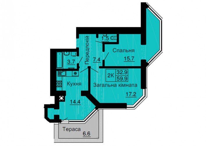 2-Х КІМНАТНА КВАРТИРА 59.90 М/КВ