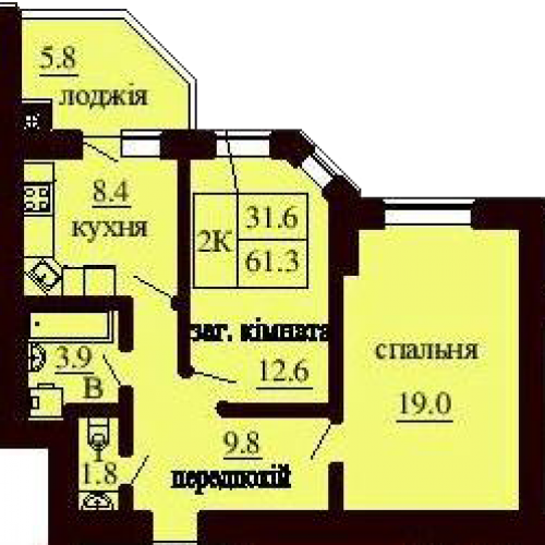 2-Х КІМНАТНА КВАРТИРА 61.30 М/КВ