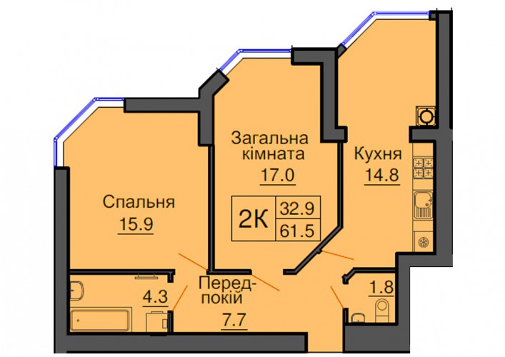 2-Х КІМНАТНА КВАРТИРА 61.50 М/КВ